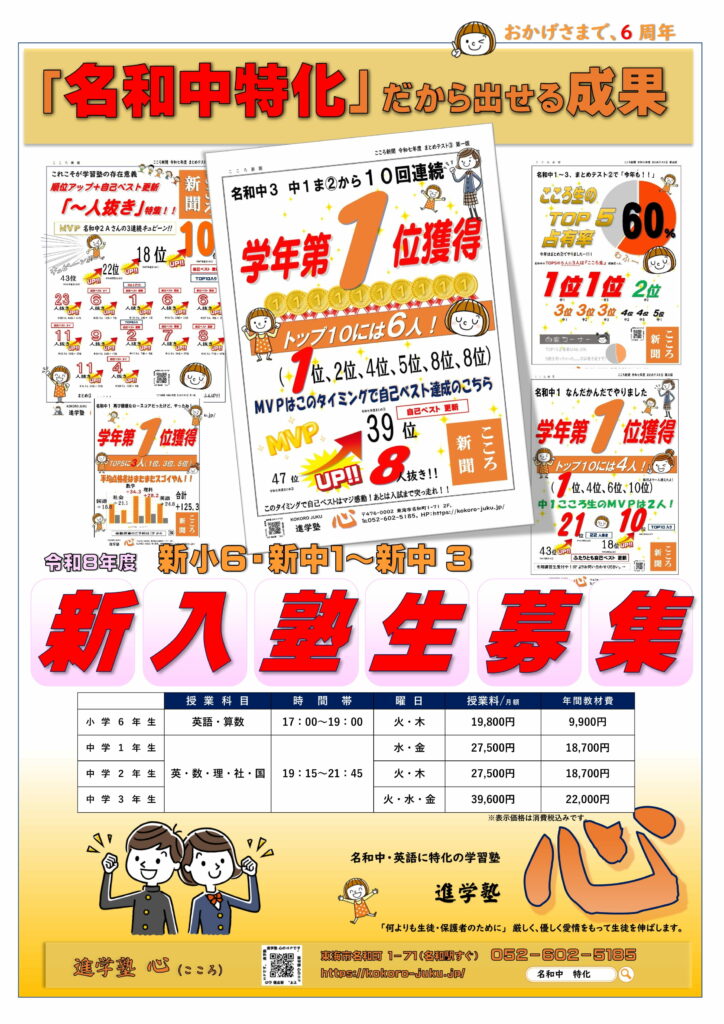 | 新中3 残席、ごくわずかです。ご検討はお早めに。 |